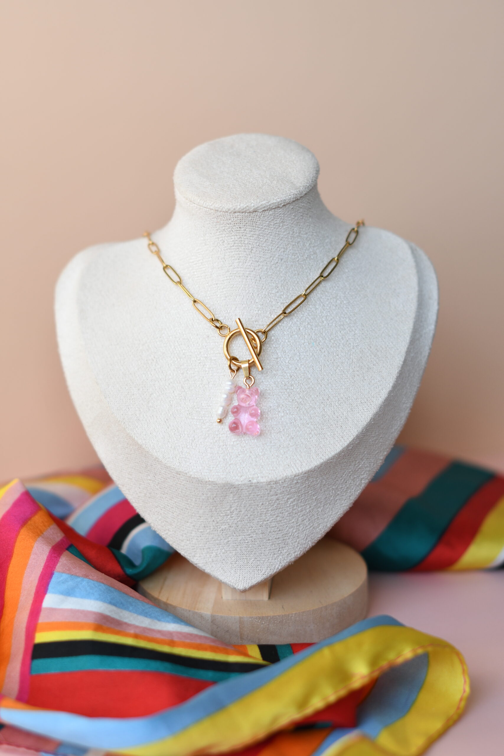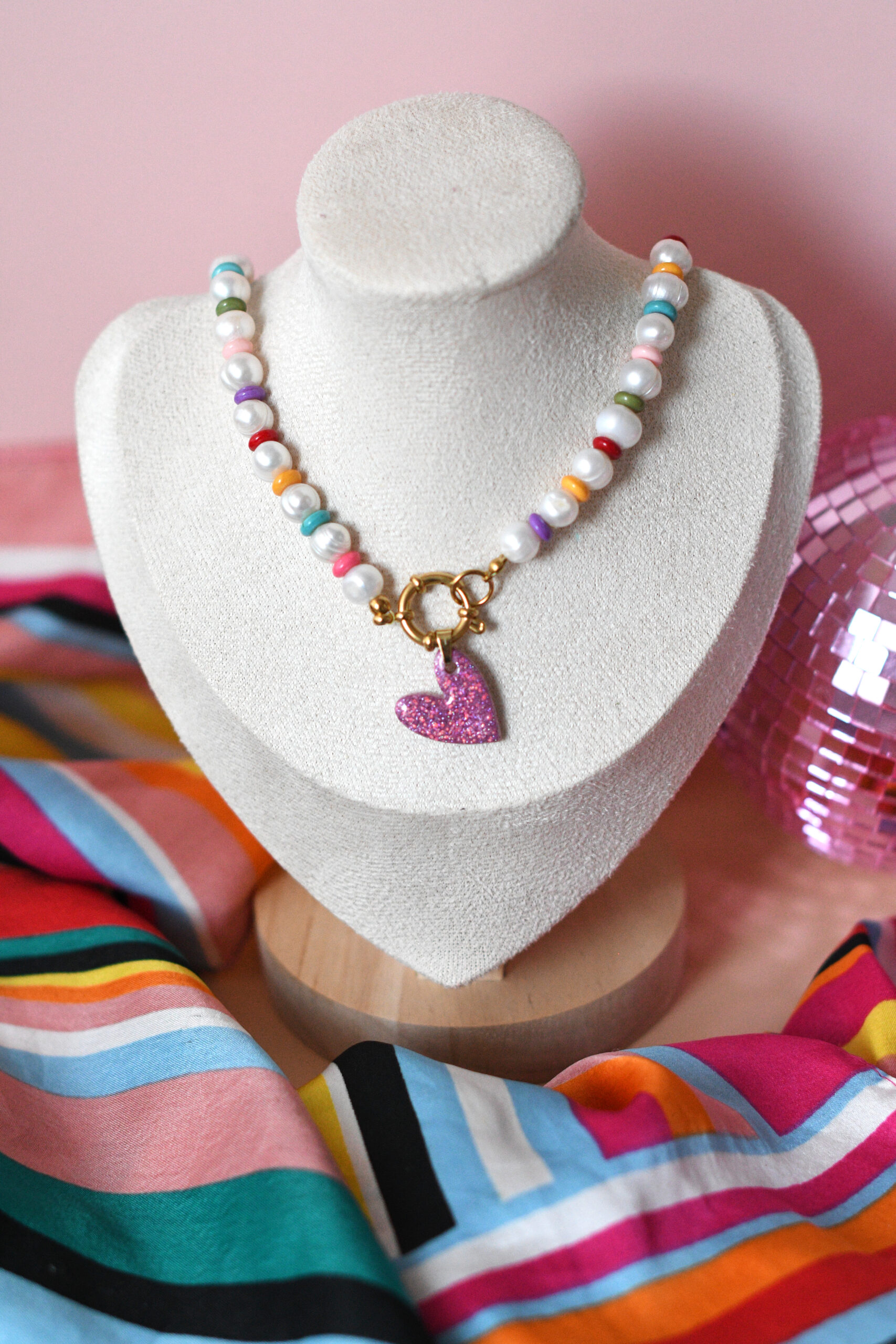 Nakit je izrađen od polimerne gline, epoksi smole i akrila, a metalni dijelovi su od visokokvalitetnog nehrđajućeg čelika za dugotrajnost. Uz to često kombiniram bisere, perle od poludragog kamenja i sedefa.